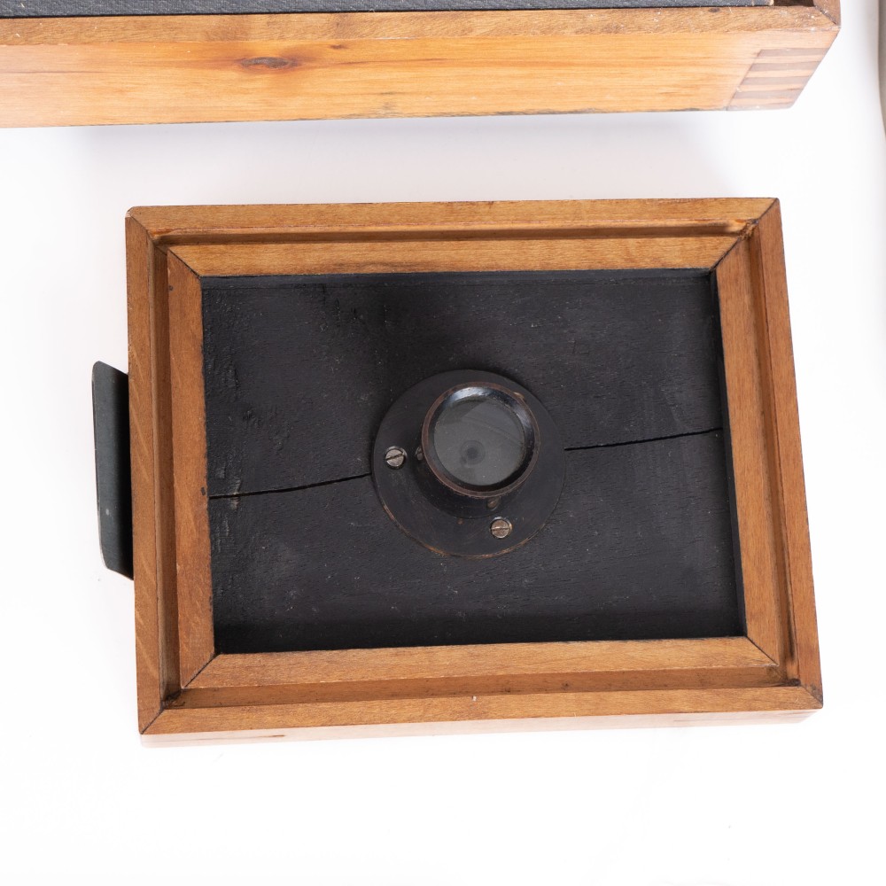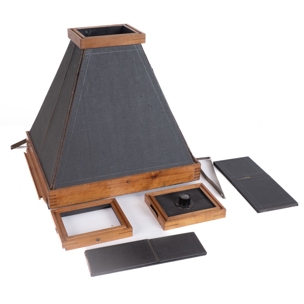 Observando la fotografía superior vemos la parte inferior donde se apoya todo el conjunto que tiene un registro lateral. Dentro del mismo se coloca el papel con emulsión positiva. En la parte medio superior que también lleva un registro, se coloca el negativo. Al levantar la tapa superior y mediante una fuente de luz en forma vertical quedaba impresa la imagen en el papel o placa positiva.