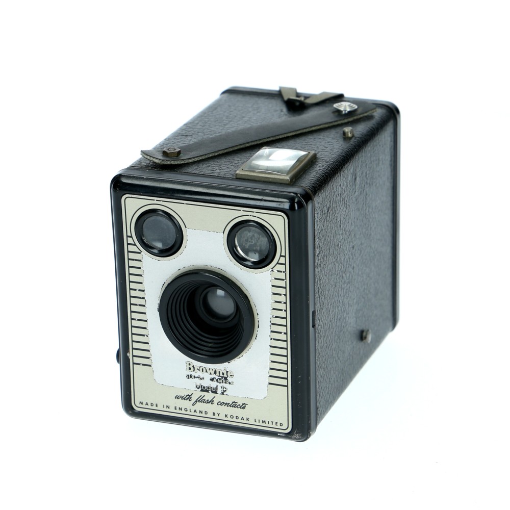 Cámara tipo box para película, fabricada en Inglaterra entre 1947-1957. Cuerpo metálico. Película 620.