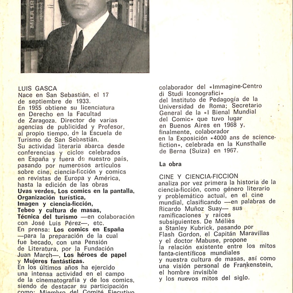 Ensayo pionero de Luis Gasca (San Sebastián, 1933–2022), jurista, editor, crítico y uno de los más destacados estudiosos españoles del cómic y del cine fantástico.