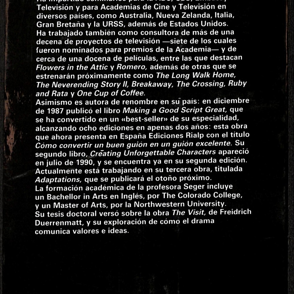 Este libro es la edición española del influyente manual de escritura de guiones Making a Good Script Great, de la consultora y profesora estadounidense Linda Seger, pionera en el análisis estructural y dramatúrgico aplicado a guiones cinematográficos.
