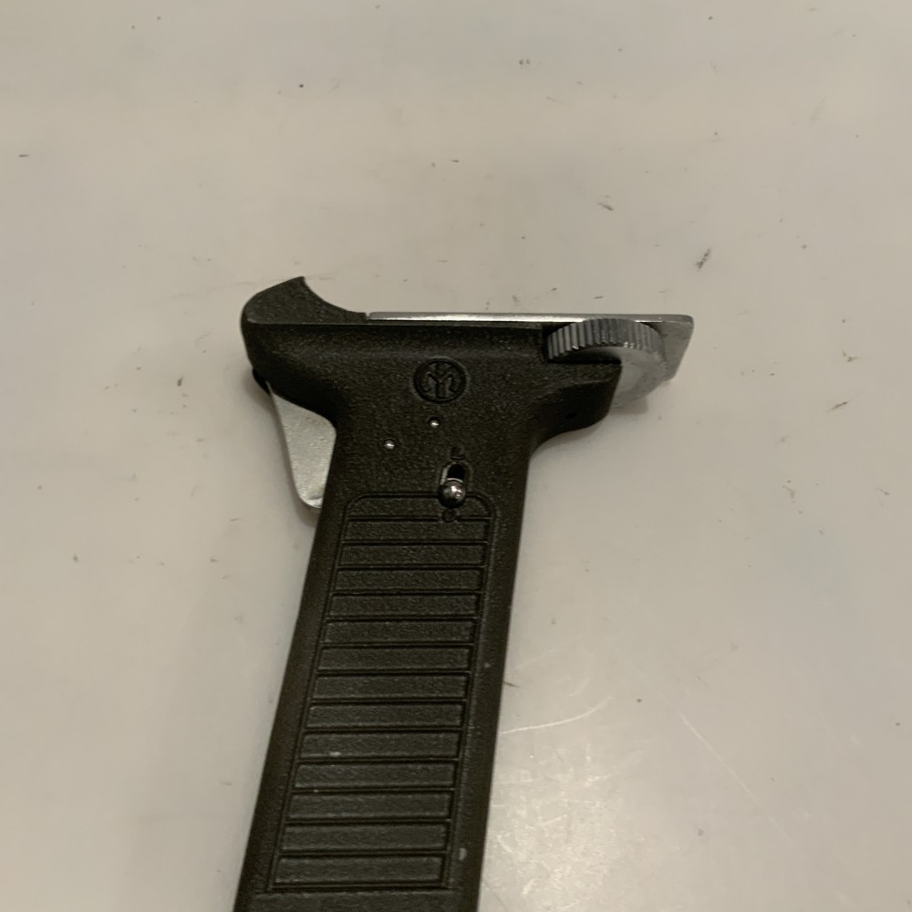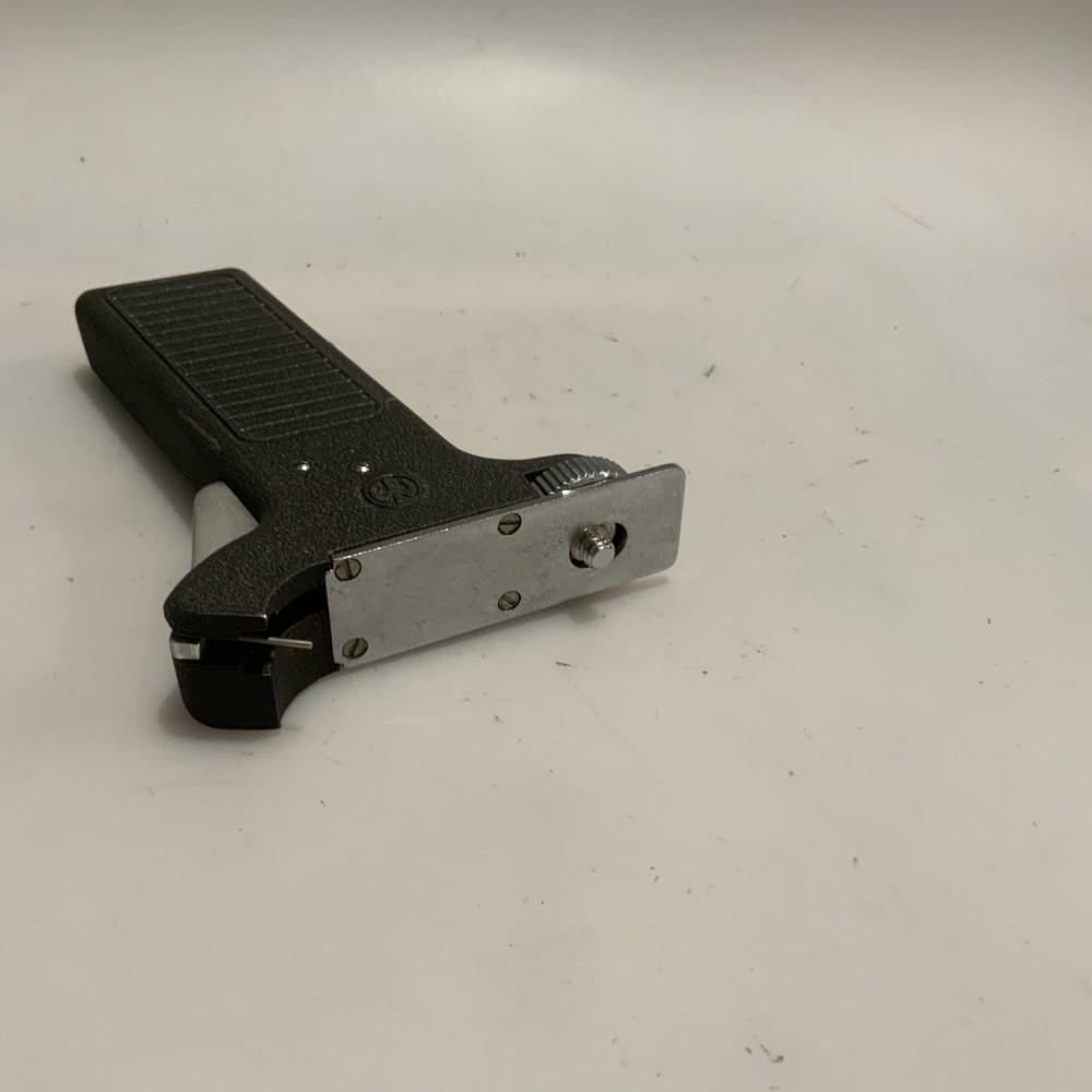 El objeto mostrado es una empuñadura de disparo (“trigger grip”) utilizada para cámaras de cine Super 8 o Single 8, producida por Yashica (marca japonesa).