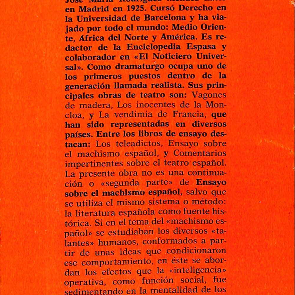 Obra de carácter sociológico y literario escrita por el dramaturgo y ensayista José María Rodríguez Méndez (Madrid, 1925 – 2009), figura destacada del teatro español realista de posguerra.