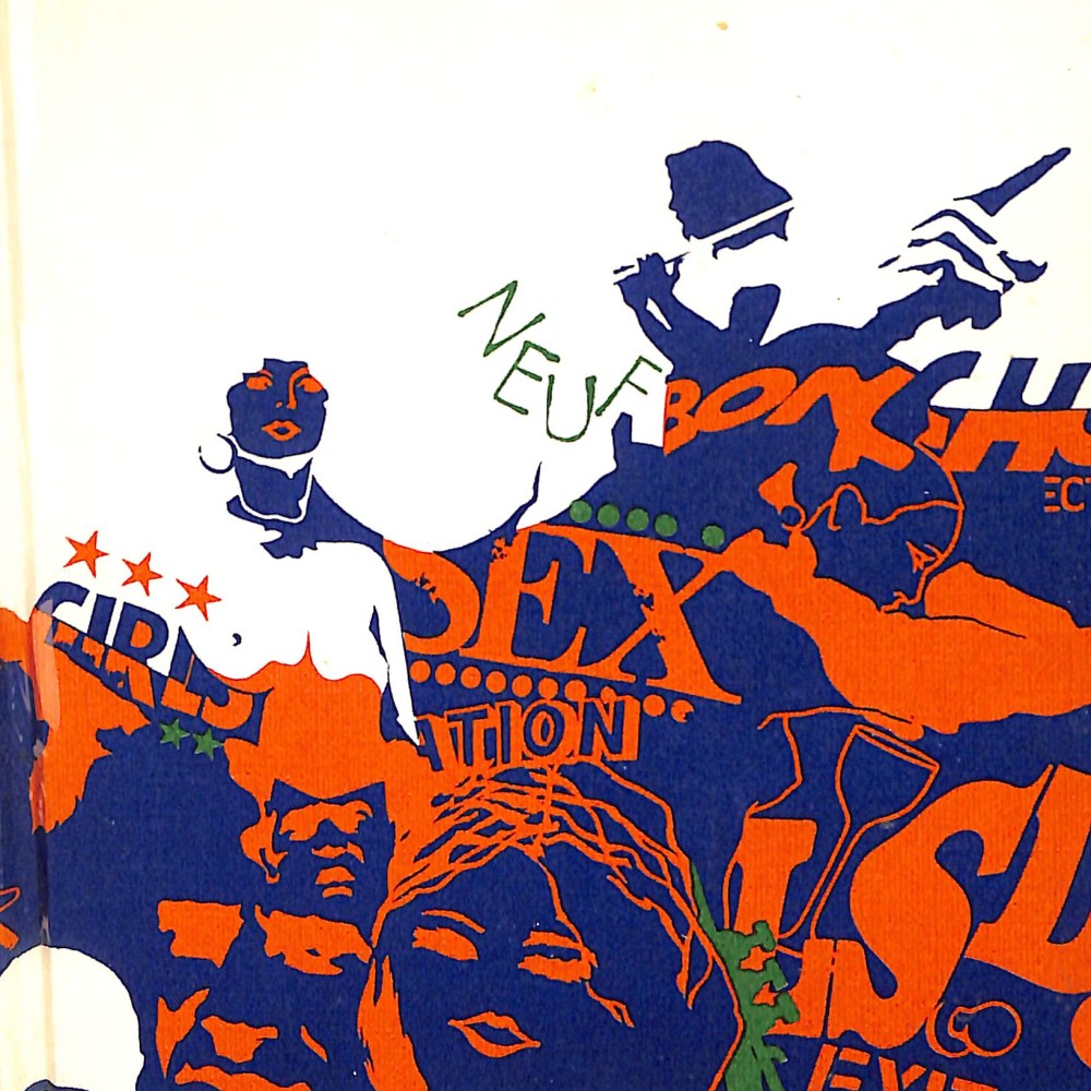 El diseño gráfico de la cubierta es particularmente notable: un collage simbólico en colores azul, naranja y verde, donde se mezclan imágenes estilizadas de figuras humanas, símbolos monetarios y palabras como SEX, SOUL, EXIT o GIRLS, evocando la iconografía psicodélica y contestataria de la época. Esta estética lo sitúa dentro del contexto visual del pop art editorial y las publicaciones de crítica cultural inspiradas por el Mayo del 68 y la revolución sexual.