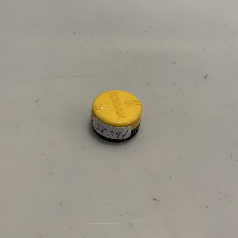 El objeto corresponde a un filtro óptico Kodak en su envase original, un pequeño recipiente redondo de plástico con tapa amarilla característica de la marca.