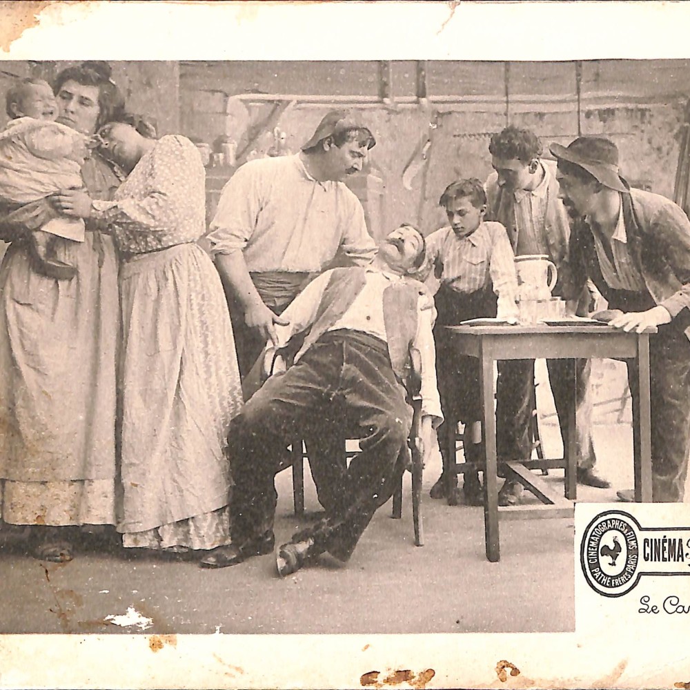 - La escena muestra un momento intenso: un hombre desfallecido o herido en el centro, rodeado de familiares y vecinos, con gestos de preocupación. Este tipo de imágenes eran muy comunes en el cine moralizante de la primera década del siglo XX, que buscaba emocionar al espectador y subrayar los valores de la comunidad y la solidaridad.