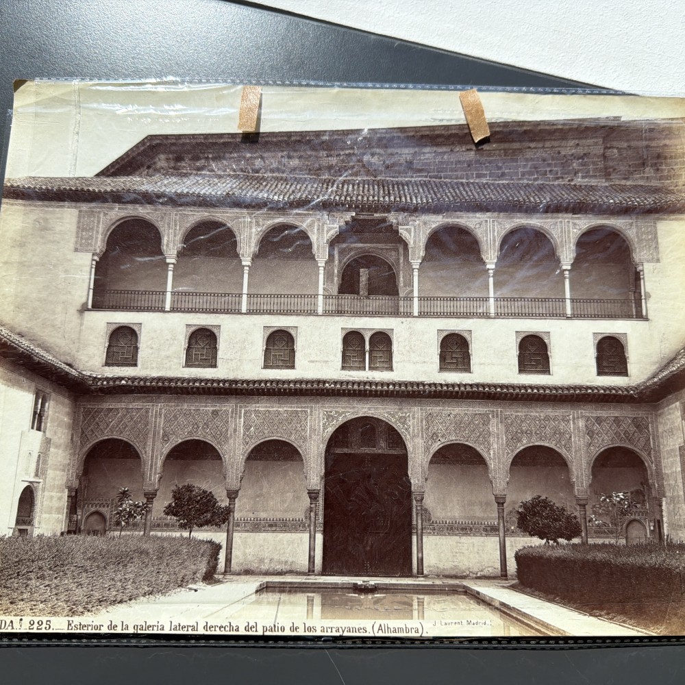 - Estado de conservación: En la imagen se observan signos leves de oxidación de la albúmina y bordes con ligeros pliegues, pero la calidad tonal y el detalle arquitectónico se mantienen excelentes.