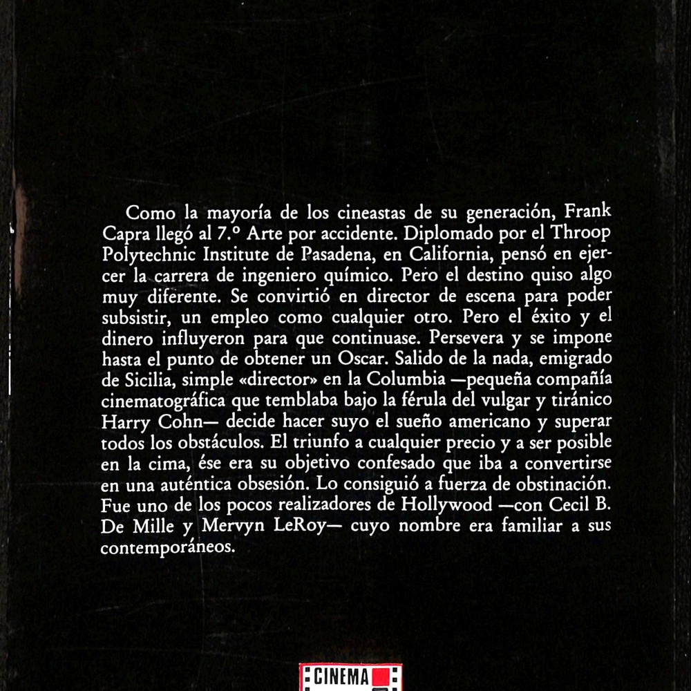 El volumen Frank Capra, escrito por Michel Cieutat, forma parte de la colección Los colosos del cine, una serie de monografías dedicadas a los grandes realizadores del séptimo arte. Esta colección, publicada por Cinema Club Collection, ofrecía al público hispanohablante un conjunto de biografías críticas accesibles y documentadas, centradas en figuras esenciales de la historia del cine mundial.