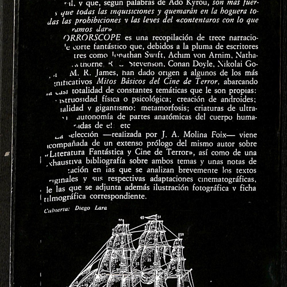 El volumen Mitos básicos del cine de terror —primer tomo de la colección Horrorscope publicada por Nostromo Ediciones— constituye una de las iniciativas más singulares de la crítica cinematográfica española de los años ochenta.