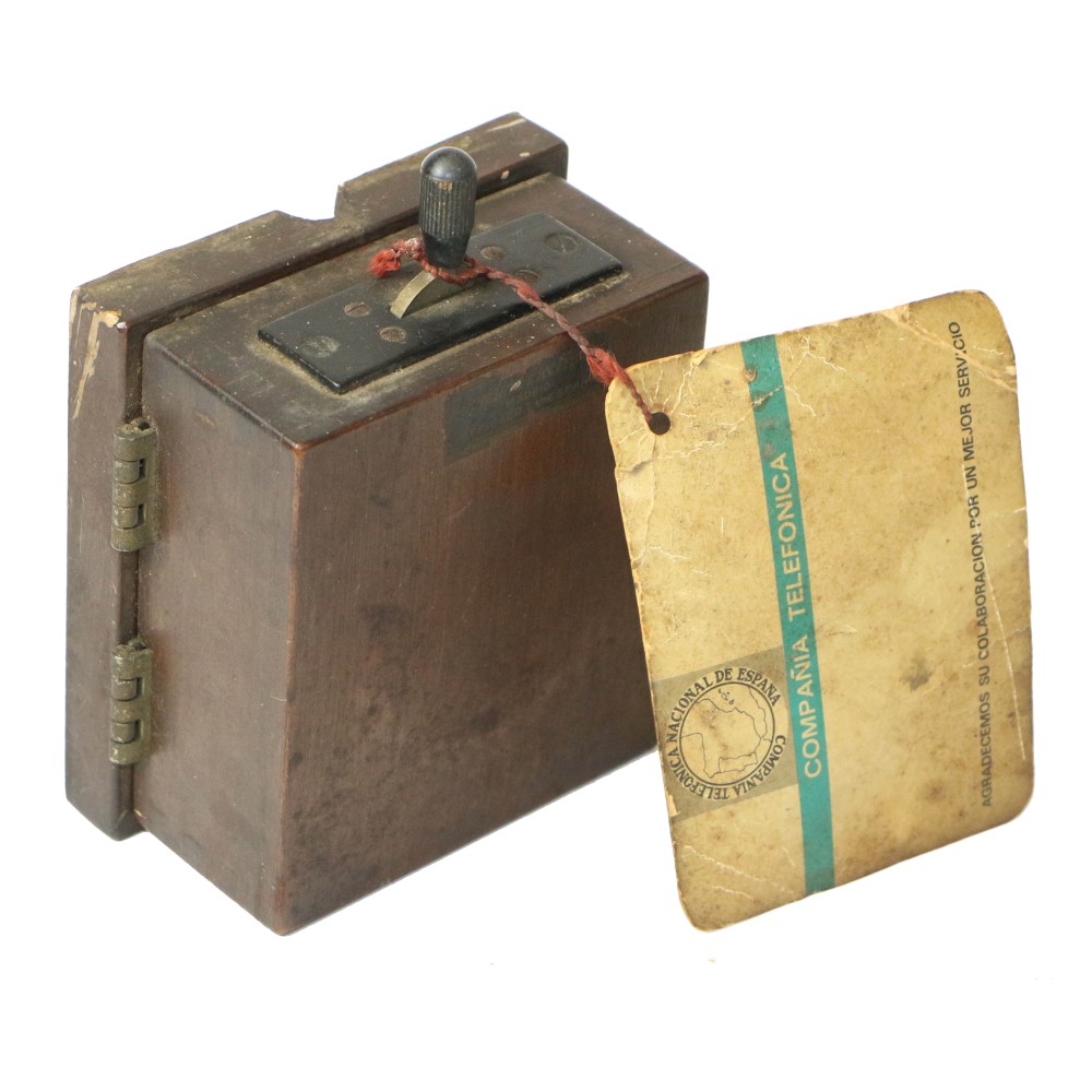 La etiqueta adjunta de la CTNE aporta un alto valor documental, al vincular la pieza con la infraestructura telefónica española de mediados del siglo XX.