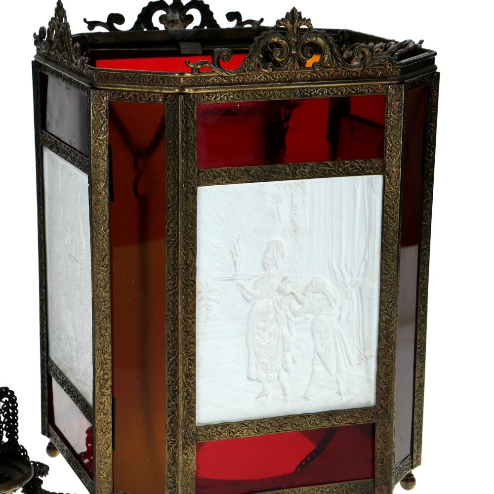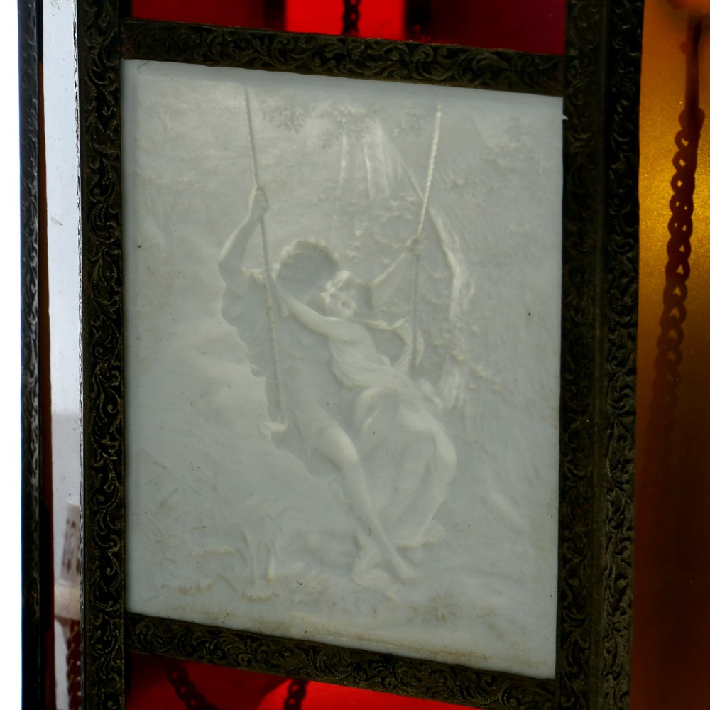 Patentada en 1827 por el Barón de Bourgoing, la litofanía se utilizó en los salones como punto de luz decorativo, incluyendo motivos que iban desde lo religioso a lo pornográfico. A partir de una delgada placa en pasta de porcelana blanca o coloreada, la litofanía podía mostrar dos imágenes: una patente, en relieve, y otra latente, que aparece cuando se coloca una fuente luminosa por detrás.