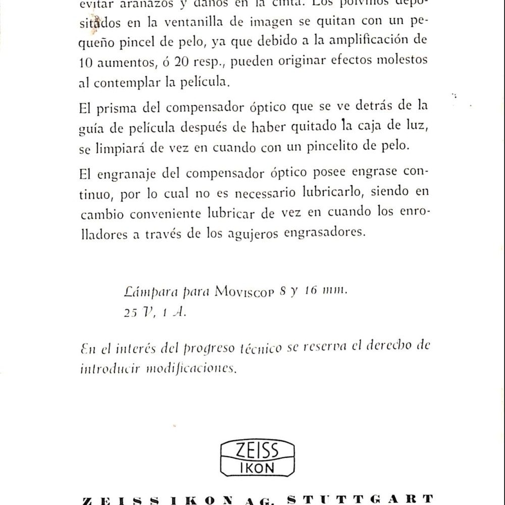 - Lengua: el manual está en castellano, lo que indica que Zeiss Ikon distribuía sus equipos en el mercado español de posguerra, probablemente a través de importadores oficiales.