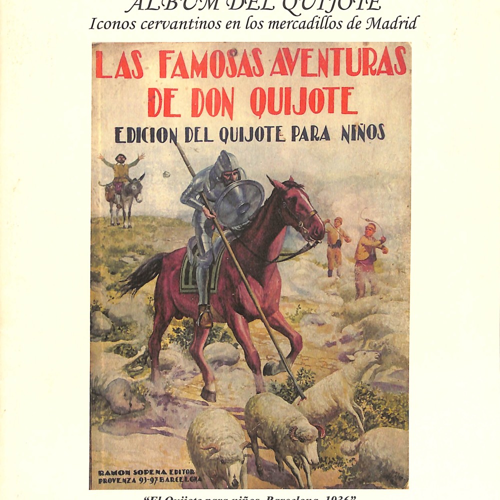 Este álbum se centra en iconografía popular del Quijote, recuperada de mercadillos madrileños: cromos, ediciones infantiles, carteles, ilustraciones y materiales gráficos.