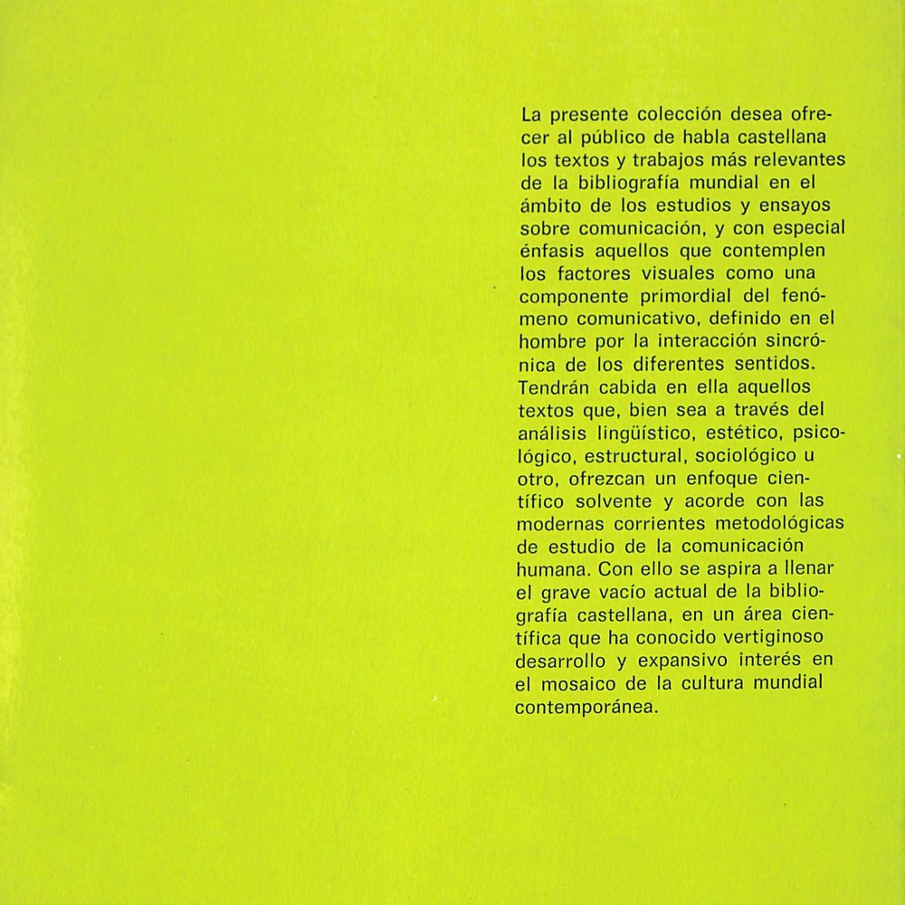 - Forma parte de la Colección Comunicación Visual, que incluía traducciones y estudios avanzados de semiótica, comunicación y teoría cinematográfica.