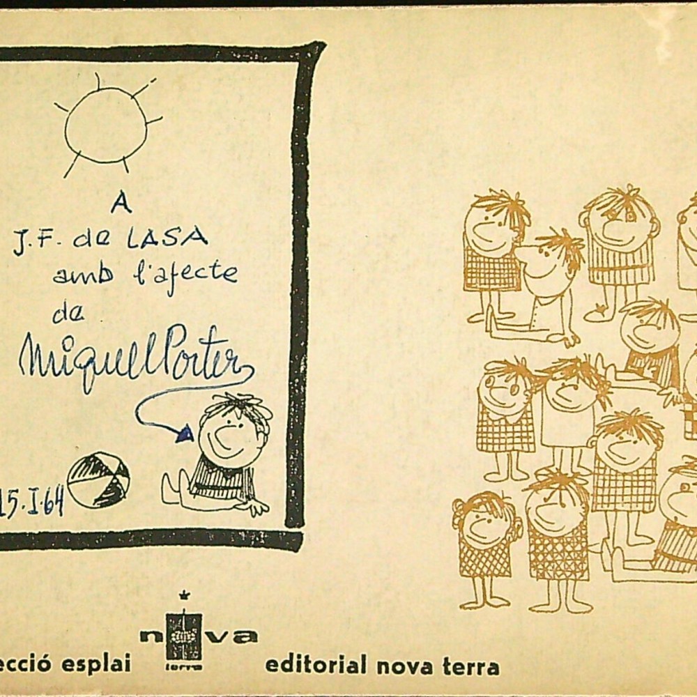 👉 Tu ejemplar incluye dedicatoria autógrafa de Miquel Porter, fechada el 15-I-64 y dirigida a “J.F. de Lasa”.