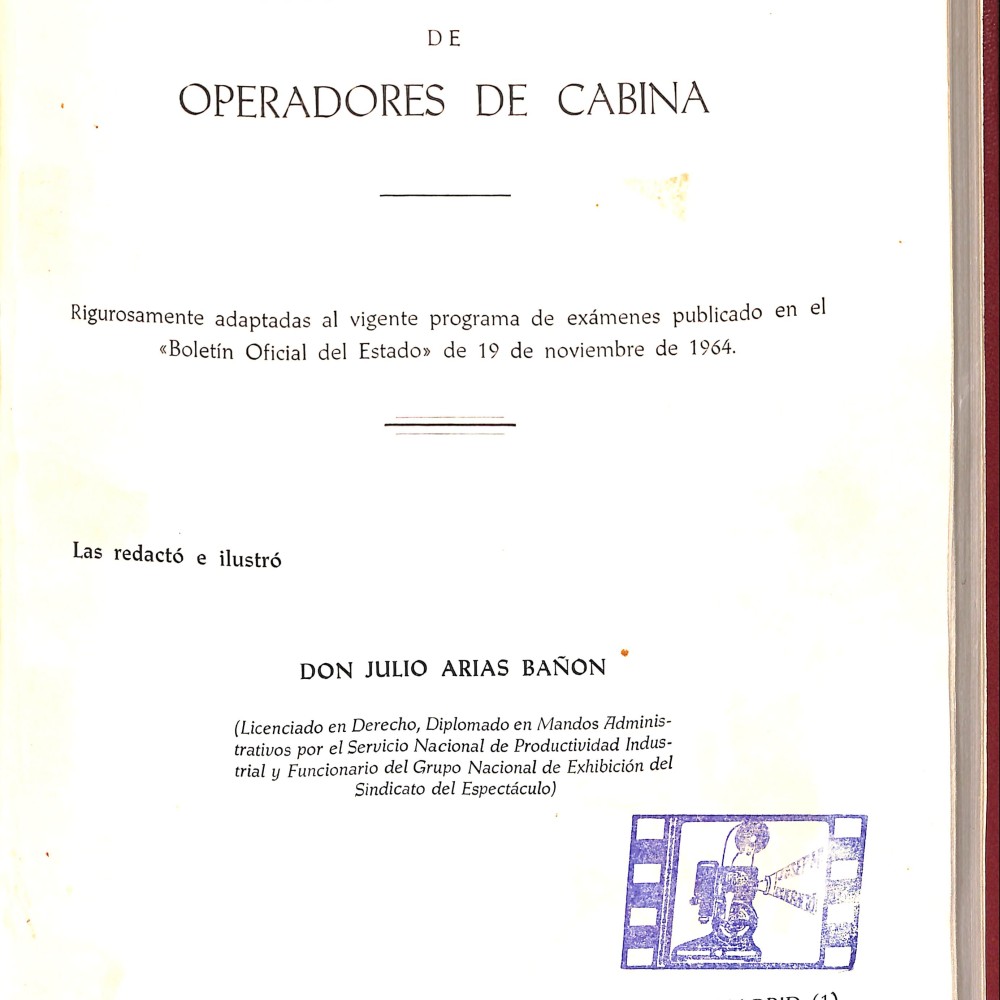 Durante la década de 1960, los operadores de cabina eran profesionales regulados por el Estado. Este manual, elaborado por un funcionario del Sindicato del Espectáculo, refleja la estructura burocrática y formativa del sector cinematográfico español bajo el franquismo.