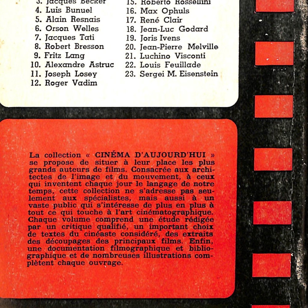 El libro Sergei Michailovitch Eisenstein fue publicado originalmente en 1950 en la colección Cinéma d’Aujourd’hui, dirigida por Henri Agel y editada por Seghers (París), que reunió monografías dedicadas a los grandes autores del cine mundial: Griffith, Chaplin, Vigo, Renoir, Welles, etc.