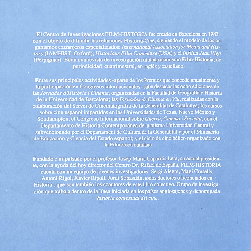 Publicación elaborada por el Centro de Investigaciones Film-Historia, dirigido por Román Gubern y Miquel Porter i Moix, en colaboración con investigadores universitarios.