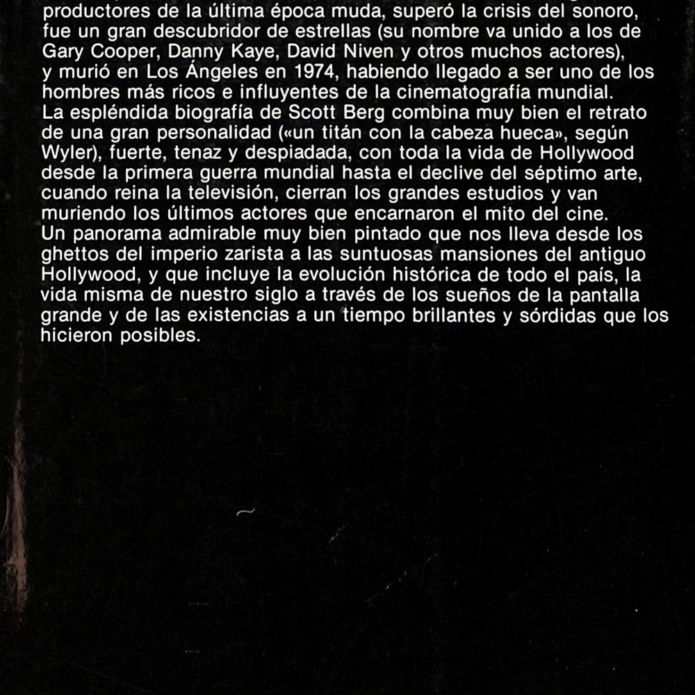 El autor, A. Scott Berg —galardonado posteriormente con el Premio Pulitzer—, realiza en este libro una biografía total del mítico productor Samuel Goldwyn (1879–1974), pionero del cine estadounidense, cofundador de la Paramount Pictures y creador de la marca Metro-Goldwyn-Mayer (MGM).