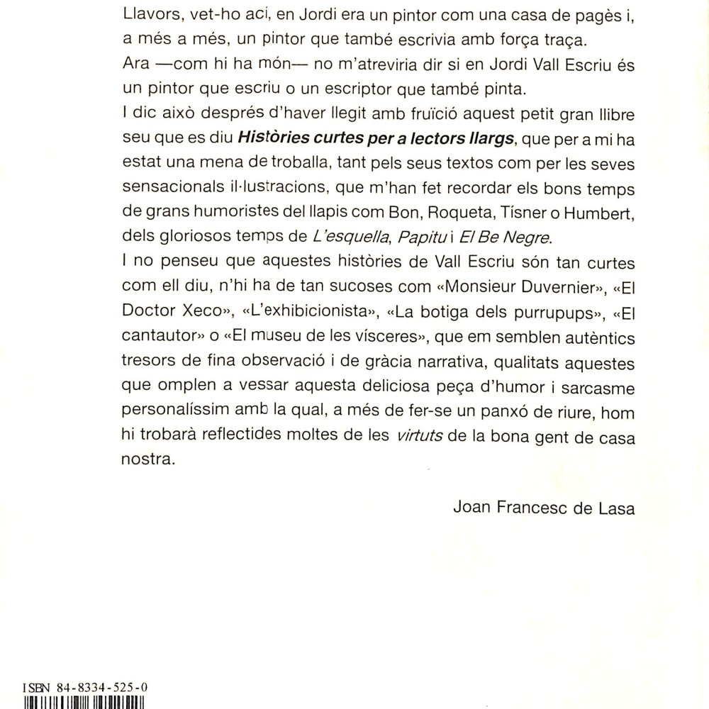 Libro de relatos breves en catalán con ilustraciones humorísticas.