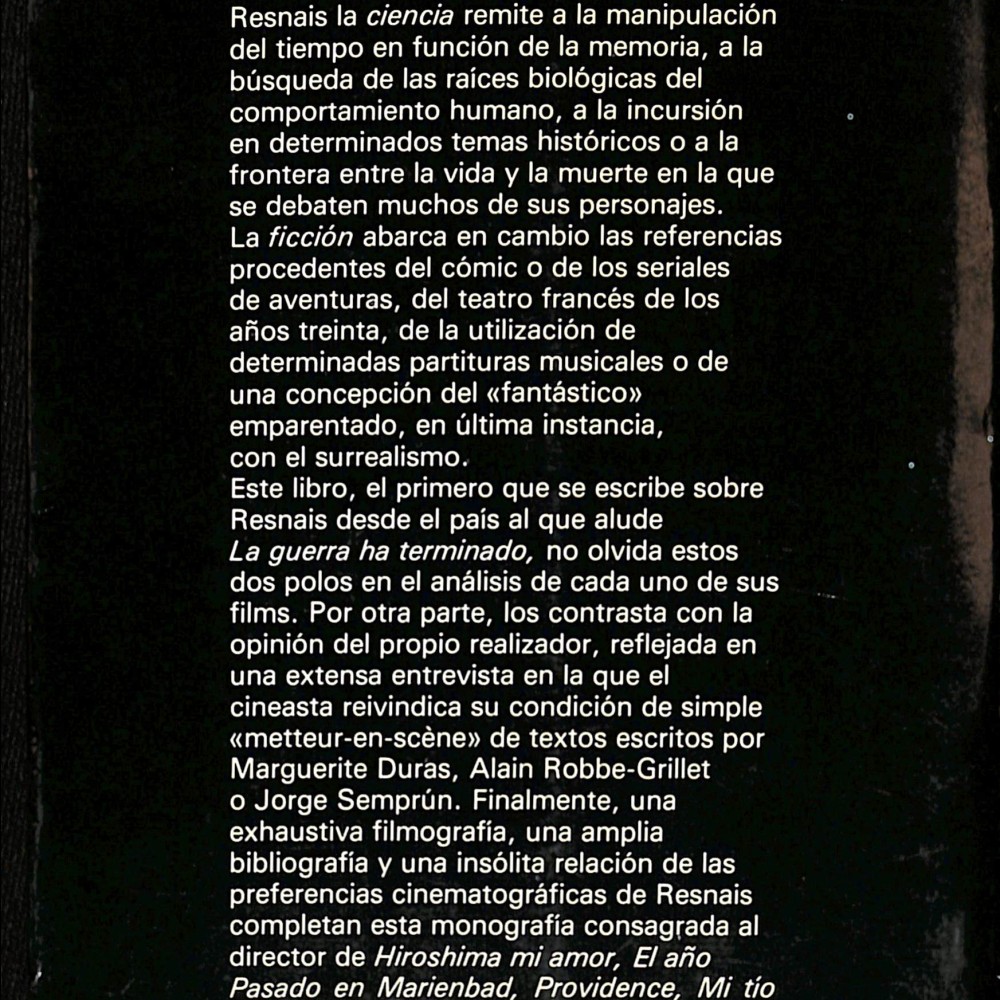 En los años 80 publicó diversos estudios sobre cine moderno, siendo este volumen una de las primeras aproximaciones españolas al cine de Resnais desde un enfoque filosófico y científico.