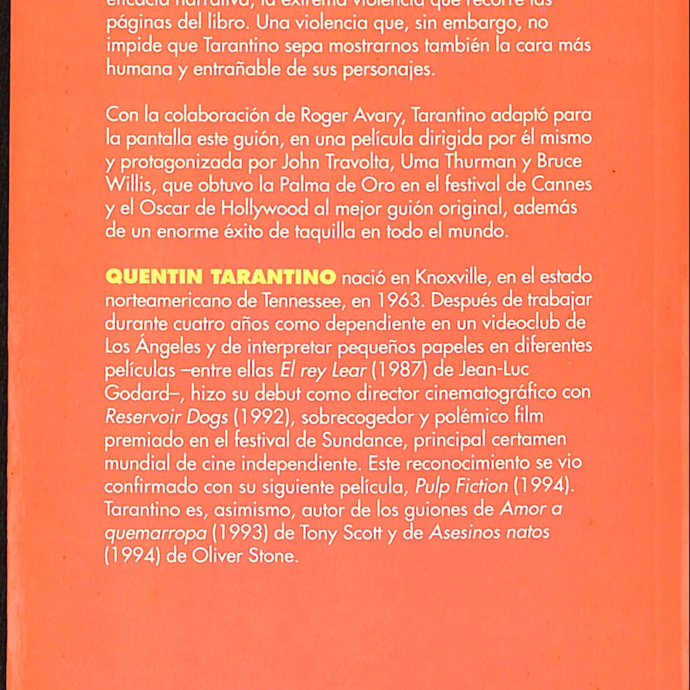 - Encuadernación / Formato: Rústica, 23 × 15 cm aprox., cubierta a color con fotograma de Uma Thurman (Mia Wallace).