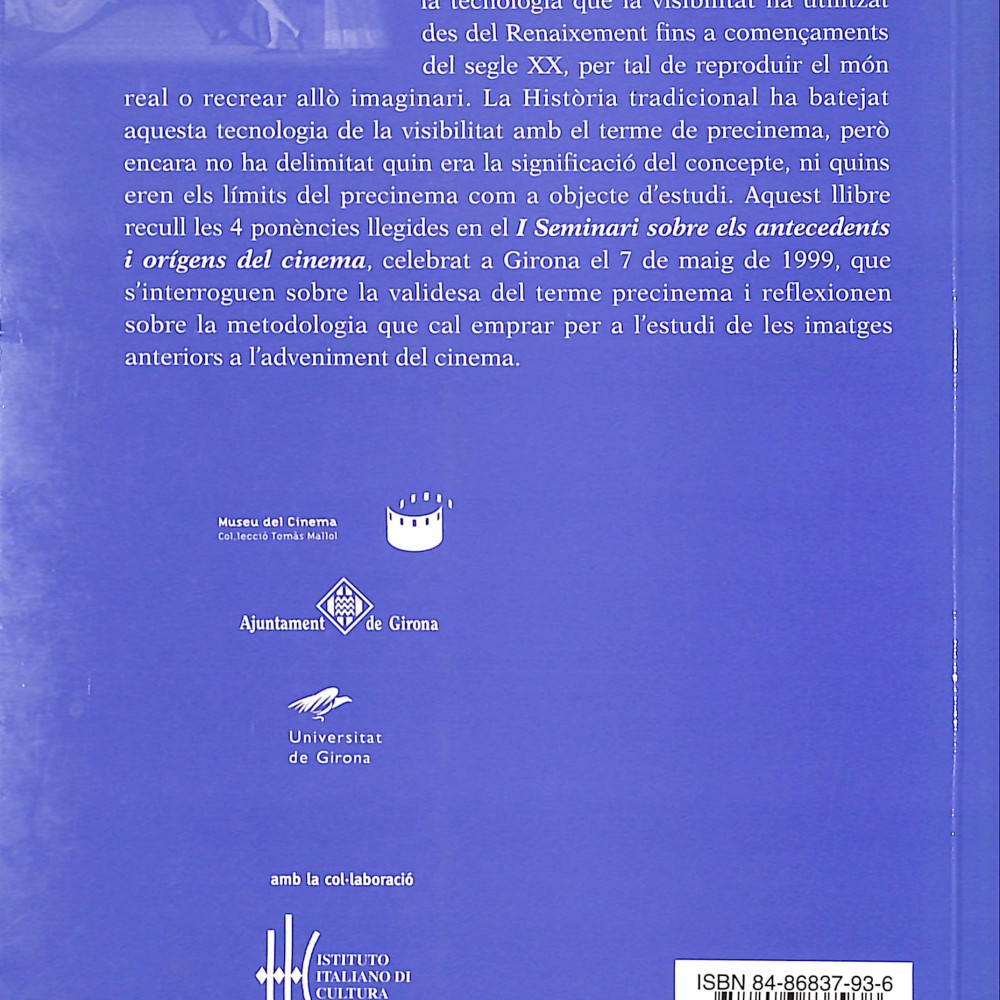 - El volumen recoge las ponencias del I Seminari sobre els antecedents i orígens del cinema, celebrado en Girona el 7 de mayo de 1999.