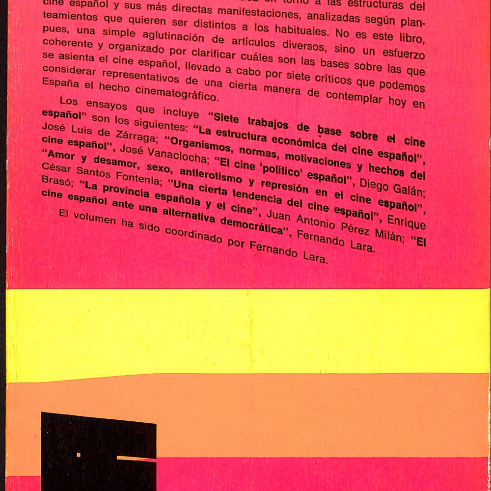 El título del libro —7 trabajos de base— es programático: se trata de un intento por fundamentar un pensamiento crítico estructurado sobre el cine español, en una época de revisión cultural y política.