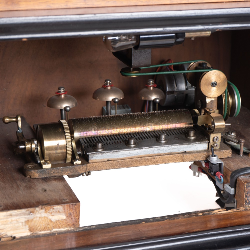 - Material: Caja de madera y cristal, mecánica de bronce.