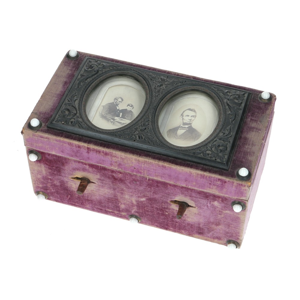 Patente registrada en abril de 1865, pocos días antes del asesinato del presidente Abraham Lincoln. Este objeto se sitúa en el contexto de la democratización de la fotografía y del auge de los retratos de personalidades públicas y familiares como elementos de identidad y memoria en los hogares.