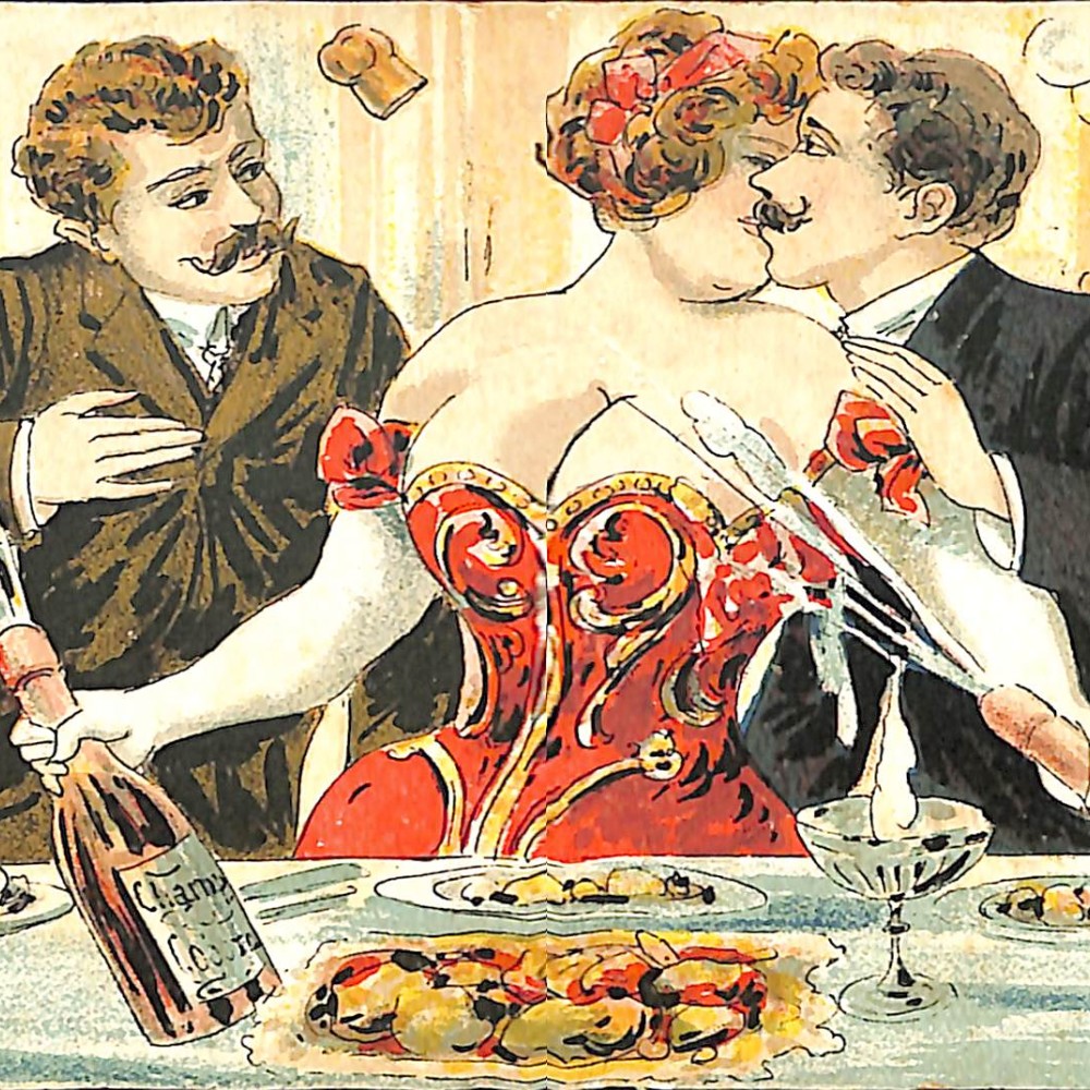 En Francia, estas escenas derivan de la tradición del “humour fin-de-siècle” y los grabados galantes; en Alemania y España, se usaron en publicaciones festivas o series de cabaret.